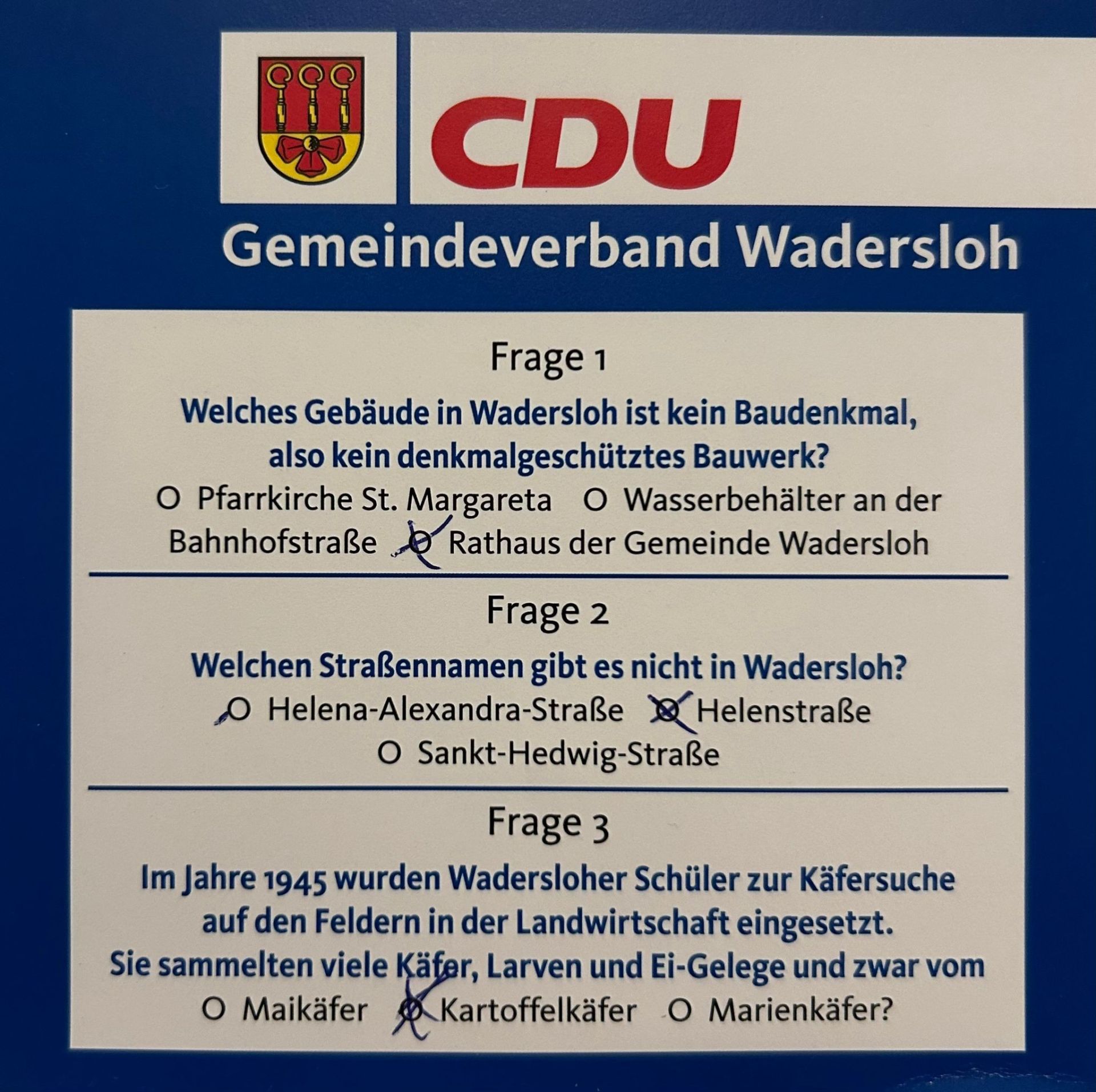 Auch in diesem Jahr hatte die CDU wieder ein Quiz für die Besucher am CDU-Stand vorbereitet, das dieses Mal etwas leichter als in den letzten Jahren war.