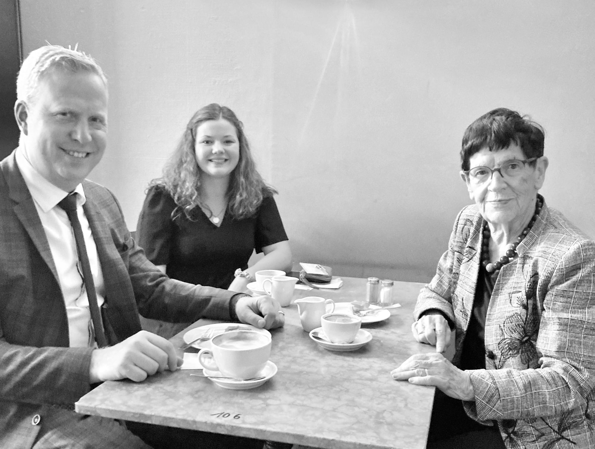 Rita Süssmuth an ihren Geburtstag 2023 im Berliner Büro von Henning Rehbaum, in der Mitte Anja Vogt aus Diestedde, die damals studentische Mitarbeiterin im Büro von Henning Rehbaum war und seit 2020 Mitglied im Vorstand der Jungen Union Wadersloh ist.