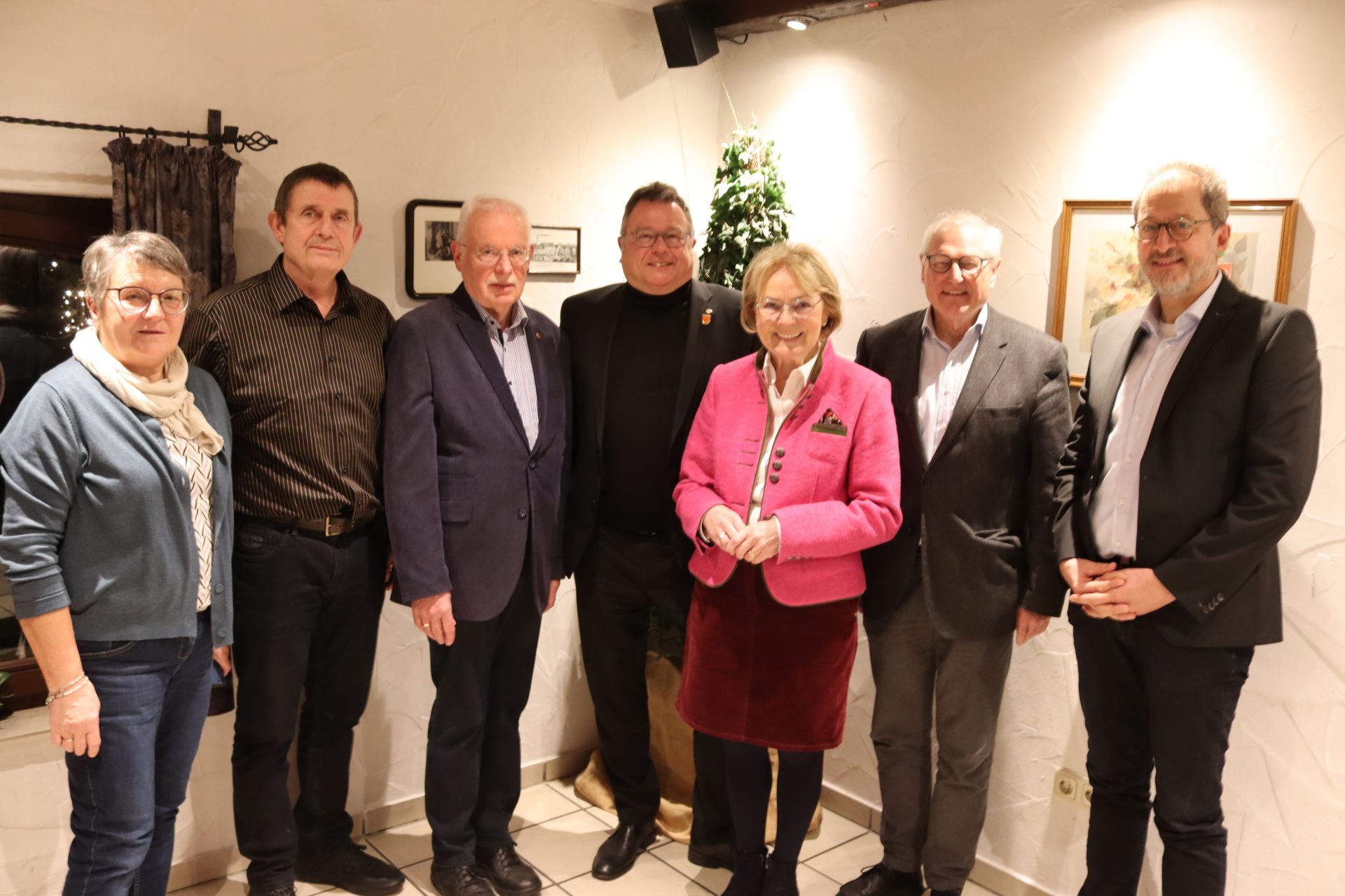 Nach der Mitgliederversammlung 2026, im Bild von links Elisabeth Lütke-Stratkötter, Rudi Luster-Haggeney, Hermann Krumkamp, BM Christian Thegelkamp, Hannelie Böcker-Riese, Dr. Wolfgang Kirsch und Dr. Thomas Wollweber, der einen Vortrag zum Thema Impfen im Alter hielt.