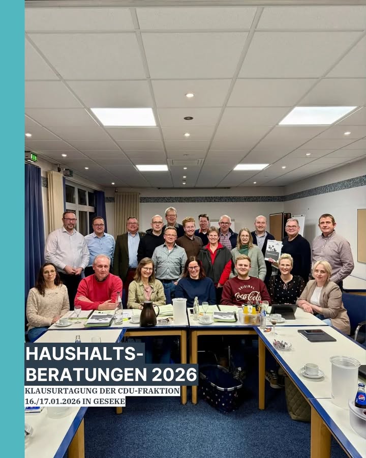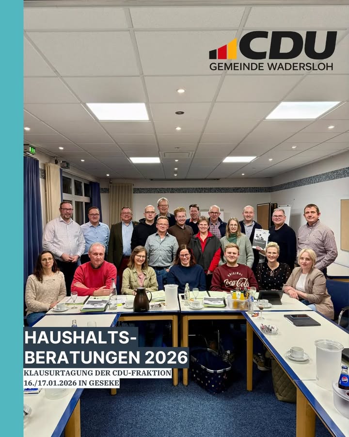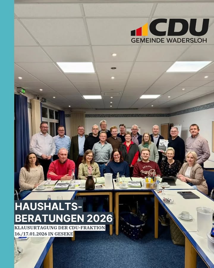 mehrDie Ratsmitglieder und Sachkundigen Bürgerinnen und Bürger der CDU Wadersloh haben in ihrer Klausurtagung den Haushaltsplan 2026 intensiv beraten ?📖🔎Ein Dank 🤝 geht an Bürgermeister Christian Thegelkamp und Kämmerer Norbert Morfeld für den informativen Austausch zu dem Zahlenwerk 🔢Nun folgen die Beratungen in den Fachausschüssen sowie die Ratssitzung am 16. März, wo der Haushalt, nach intensiven Beratungen, beschlossen wird 🤝👍💸#wadersloh #diestedde #liesborn #haushaltsberatungen #haushalt2026