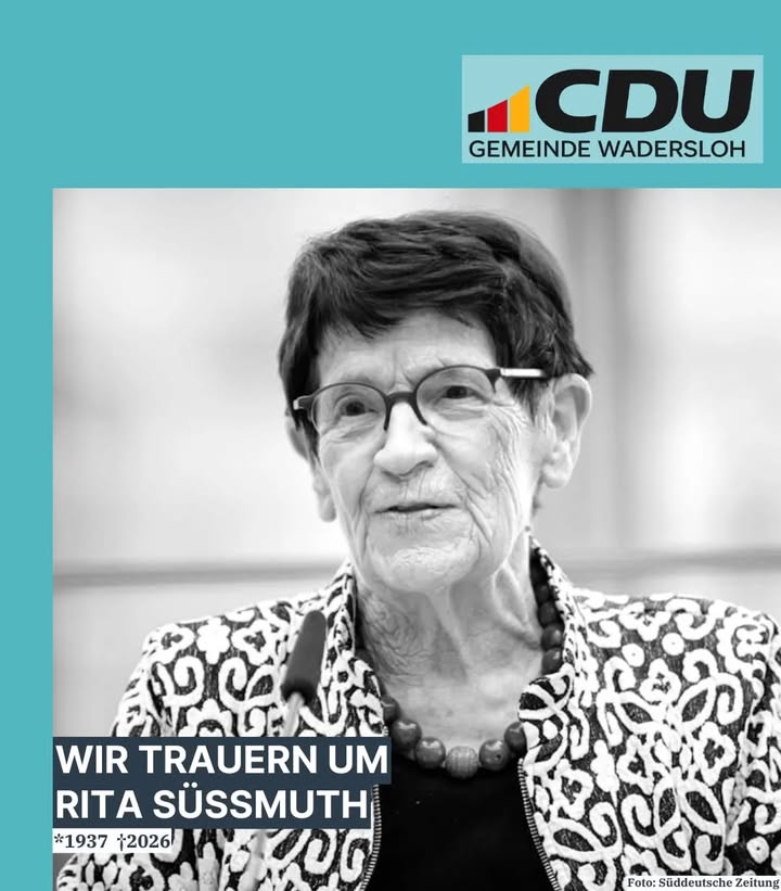 Die CDU Wadersloh trauert um die ehemalige Bundestagspräsidentin (1988-1998) Rita Süssmuth, die am heutigen Sonntag, 01.02.2026, im Alter von 88 Jahren von uns gegangen ist.Ihre Kindheit verbrachte sie im Wadersloh, wo ihr Vater als Lehrer beschäftigt war.Unser tiefes Mitgefühl gilt ihrer Familie und allen, die um sie trauern.